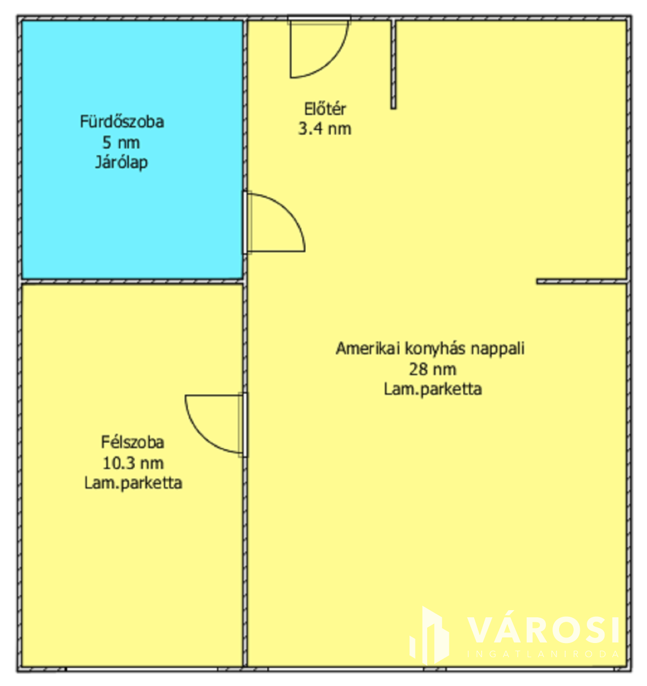 Helyiségei: amerikai konyhás nappali, hálószoba, előtér, fürdőszoba.