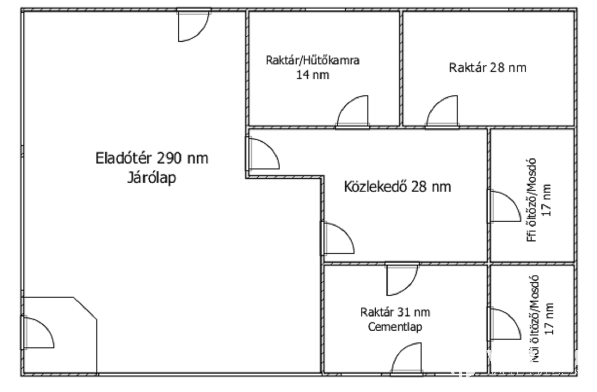 Az ingatlan 425 nm eladótérből, valamint egy 200 nm-es raktárból áll. Igény esetén a két helyiség összeépíthető, ezáltal, az eladótér cca. 600 nm-re növelhető.