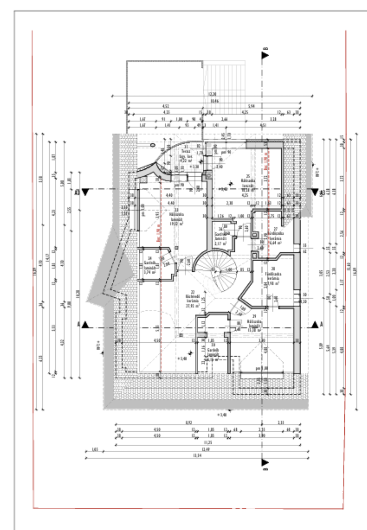 Debrecen szép kertvárosi környezetében, a Kincseshegy városrészen, 360 nm-es szerkezetkész 4 szoba nappalis 3 szintes ingatlan eladó! A ház teljesen alápincézett, ahol 7 kisebb nagyobb helyiség található. A földszinti részen, egy közel 60 nm-es hatalmas nappali étkező van, mellette 18 nm-es konyha kamrával, fürdőszoba külön wc-vel, és egy 15 nm-es szoba található. A felső szinten 3 nagyméretű hálószoba van, mindegyik saját gardróbbal, 2 fürdőszoba, és egy szép világos nappali rész van. A ház befejezéséhez, teljesen friss jogerős építési engedélyek vannak, így azonnal elkezdhető a befejezés, és egy álomszép luxus otthont lehet belőle varázsolni. A telken található még egy 80 nm-es dupla garázs, melynek az egyik részében, egy egyszobás garzon lakrész is rendelkezésre áll. Érdemes megnézni, rengeteg fantázia van az ingatlanban!!!