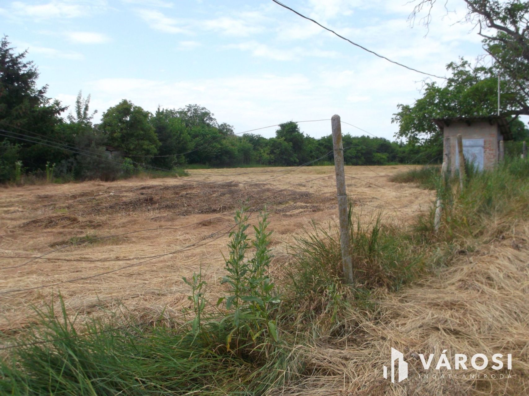 A telekhatárra egy kis alapterületű vályogtégla építésű gazdasági épület került. Az ingatlan részben körbe van kerítve drótkerítéssel.