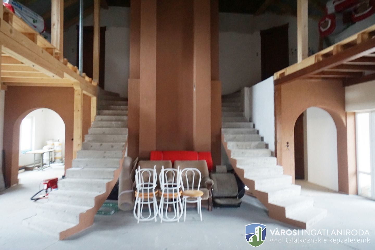 A területből 9278 nm részben lekerített építési terület, rajta 65 %-os készültségű 342 nm-es családi házzal.