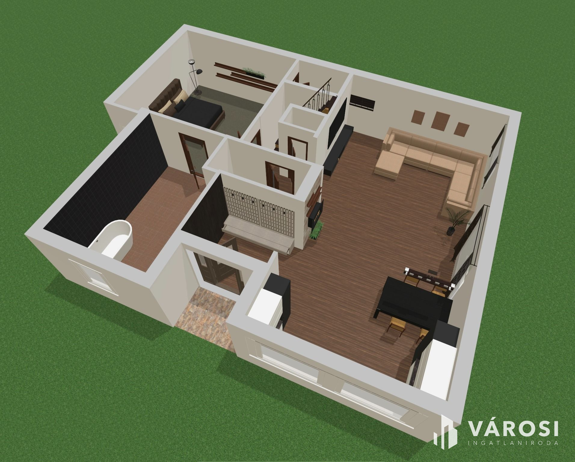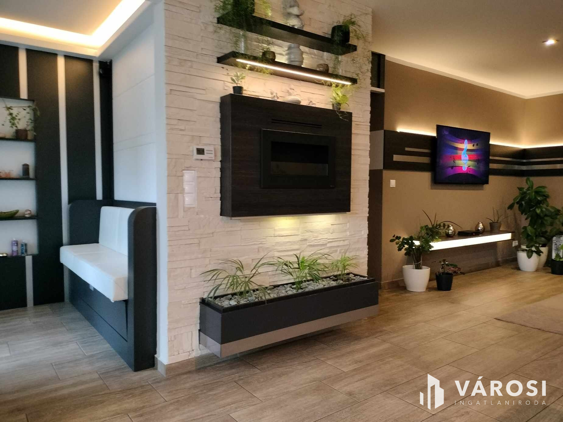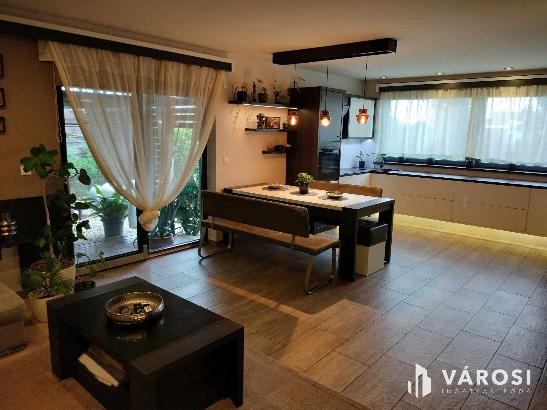 Az ingatlan a város egyik legjobb lakóparkjában található. A belső tér kialakítása, a burkolatok, a felhasznált anyagok, a dekorvilágítás mind azt az érzetet erősítik, hogy aki itt lakik, az igényes és nem a tucat megoldások híve.