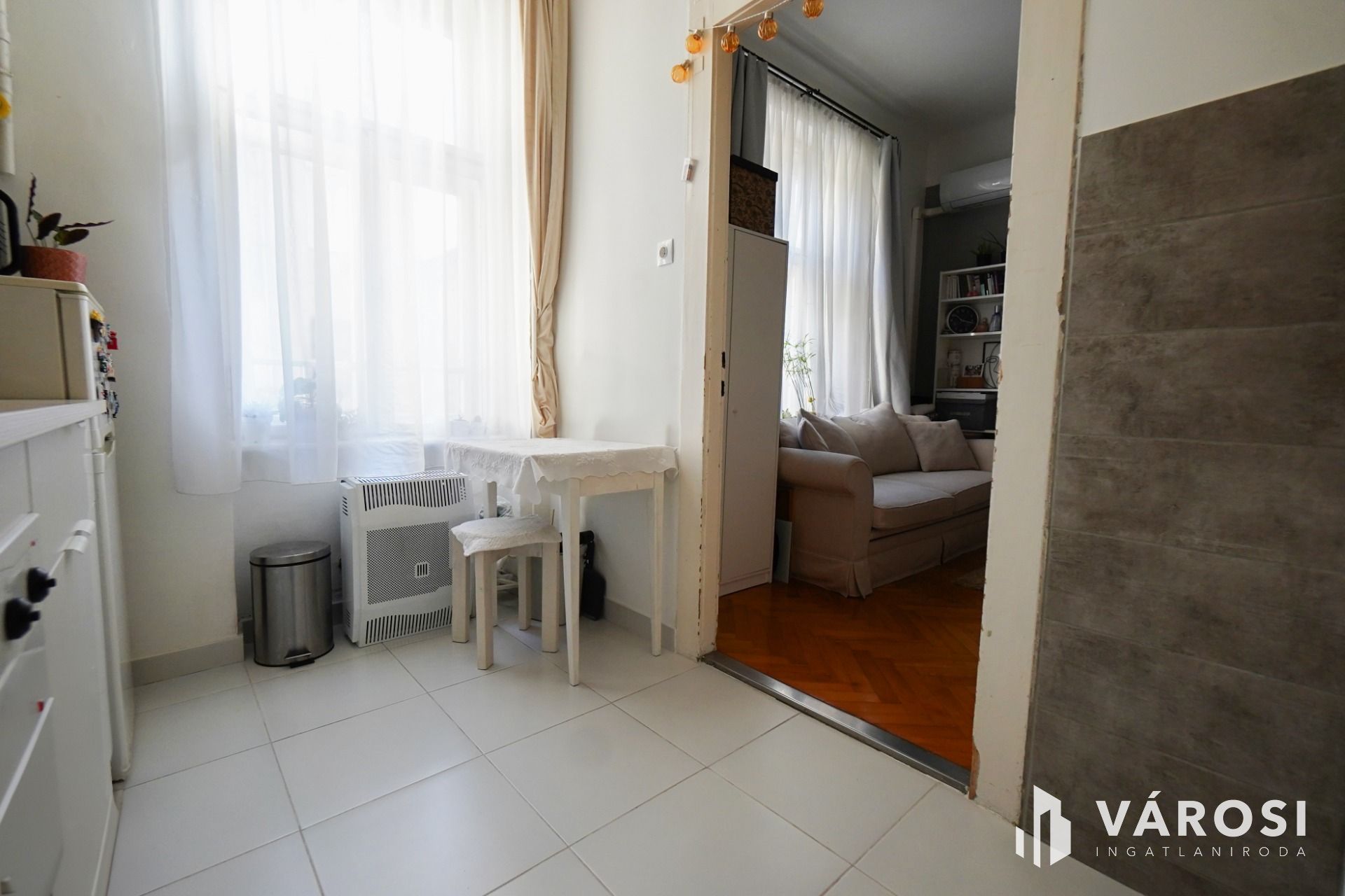 Ablakai a belső udvarra tekintenek így biztos lehet benne, hogy a külső forgalomból szinte semmi sem szívárog be a lakásba.