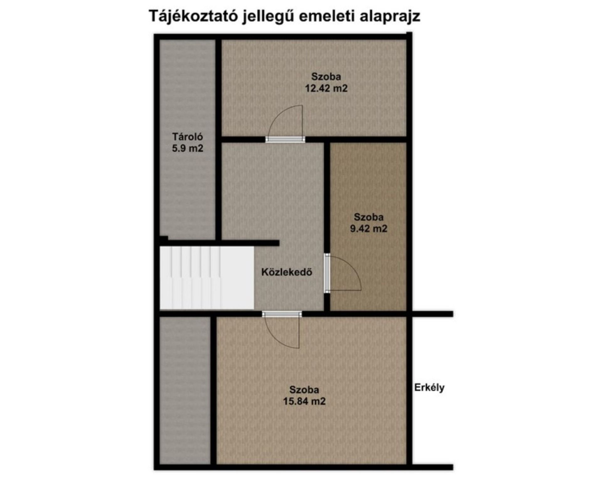 Az emeleten három szoba és egy erkély található, jelenleg felújítás alatt állnak.