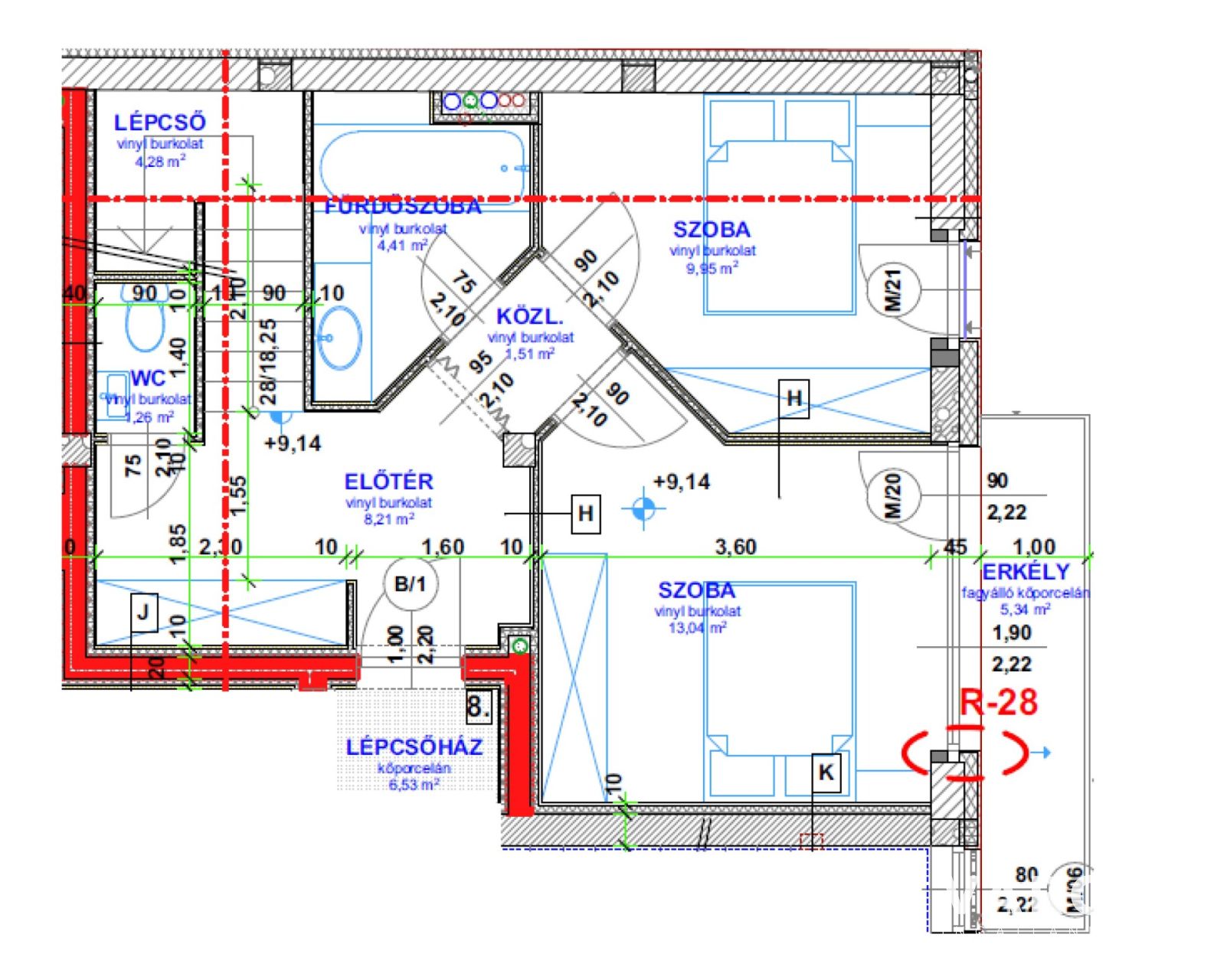1. Lakás 82,17 m2 + 11,42 m2 (erkély)