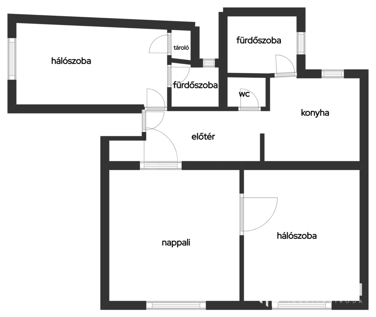 Az elrendezés kimondottan élhető: a tágas nappali mellett két kényelmes méretű hálószoba és két fürdőszoba biztosítja a mindennapi komfortot. Az ingatlan az 5. emeleten található (nem zárószint), így kifejezetten világos és csendes. A lakáshoz egy 5 m²-es, saját pincei tároló is tartozik.