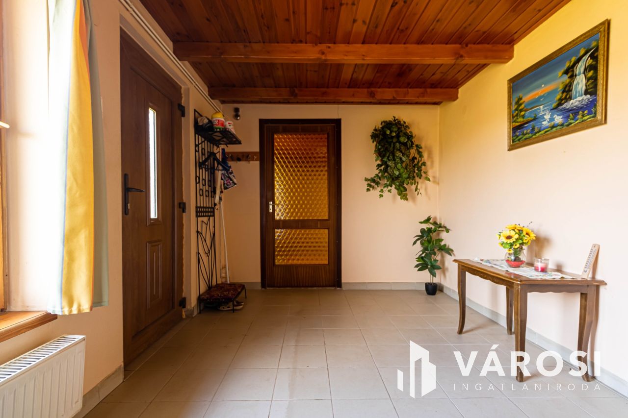 A lakótér berendezett, így azonnal beköltözhető. A házat körbeveszi a zöld övezet, így nyugodt és kellemes környezetben élhet itt. A közlekedés kiváló, a közeli belváros könnyen megközelíthető. Az ingatlan hőszigetelt üvegezésű fa nyílászárókkal rendelkezik, így nem csak esztétikailag, de energetikailag is korszerű. A fűtés gázközpontú fűtéssel megldott a használati melgvíz előállításában egy villanybojler áll rendelkezésre. A gépjármű tárolására egyv 15 m2 alapterületű minőségi mobil garáts áll rendelkezésre.